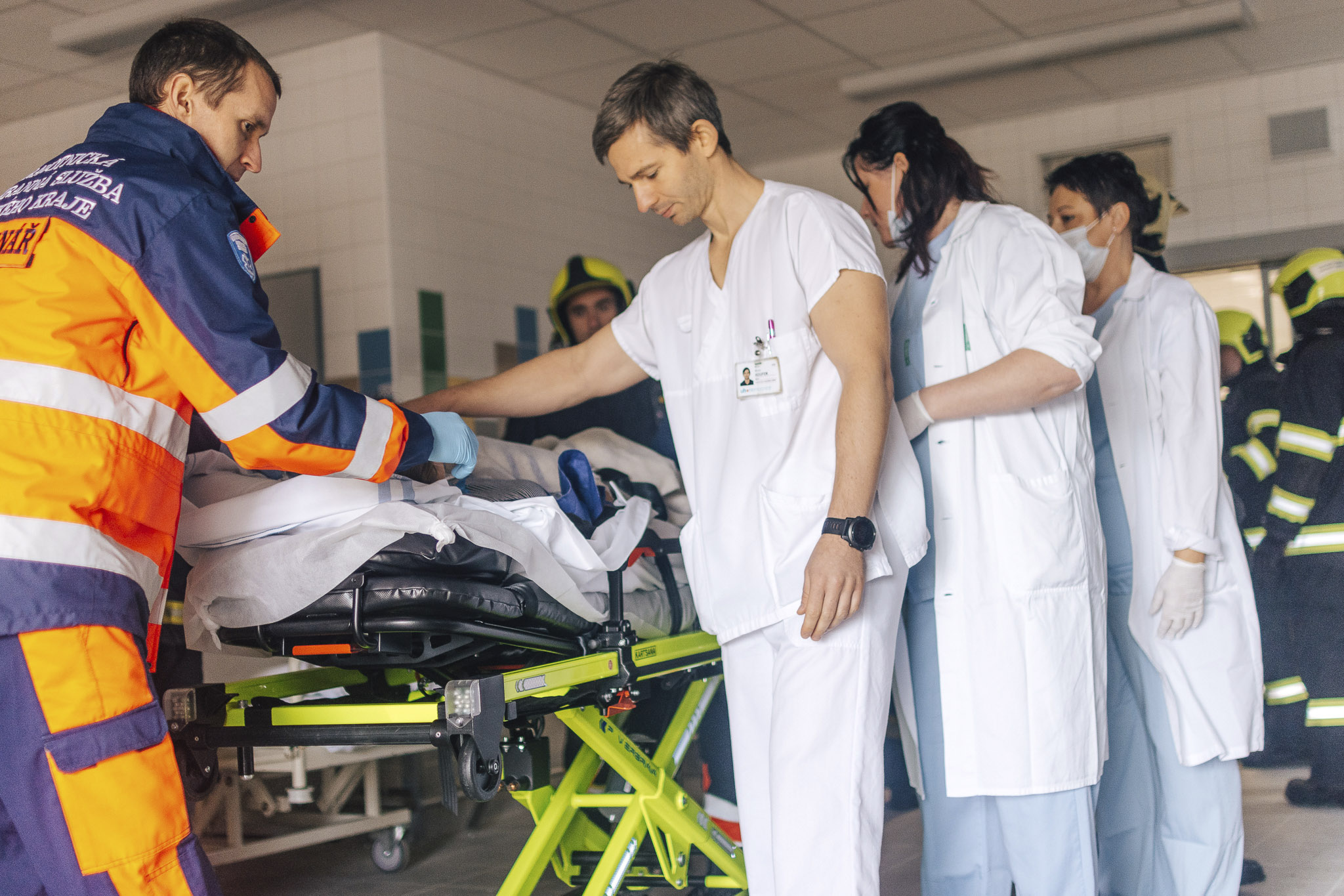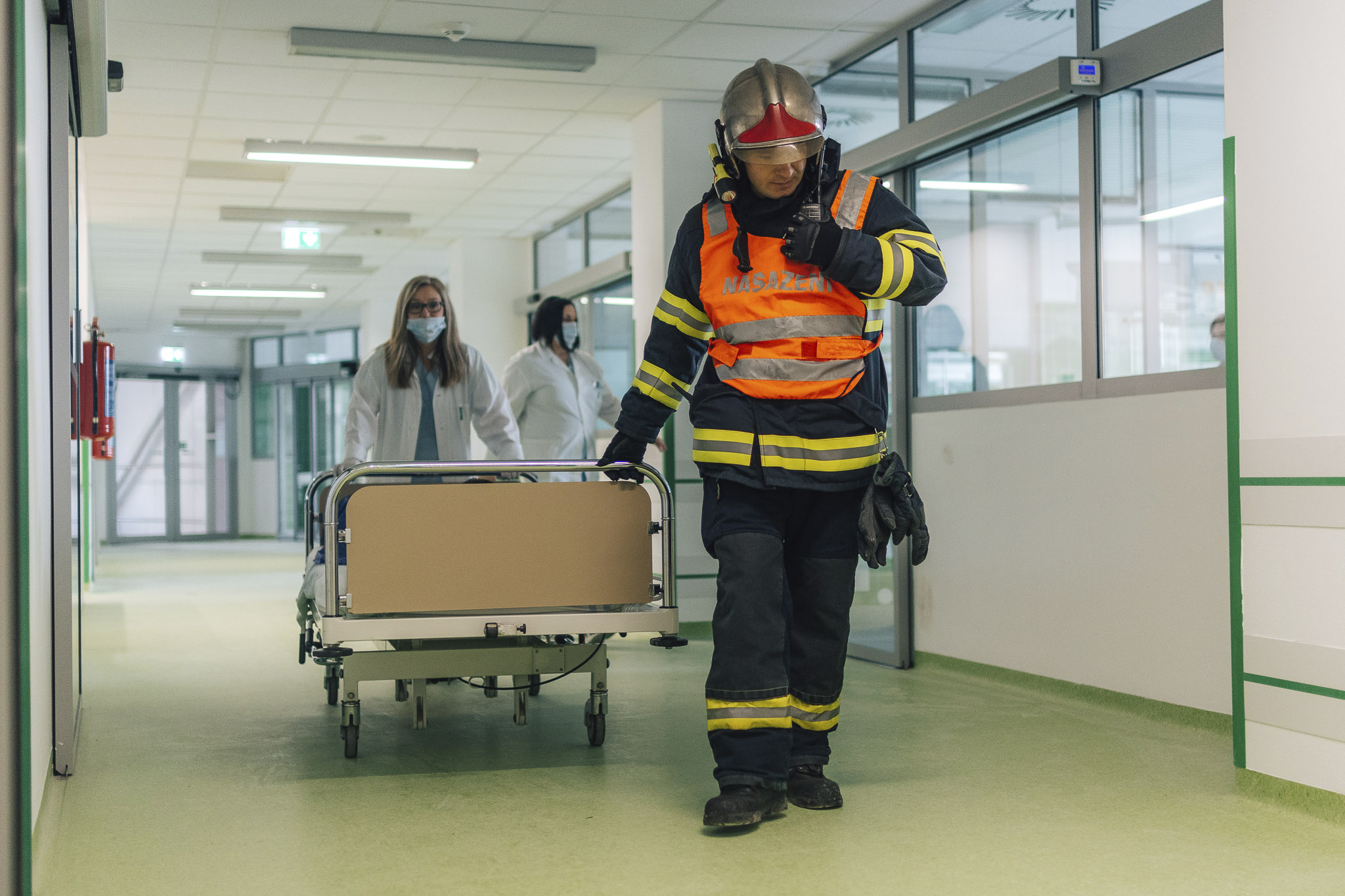 Bomba v Uherskohradišťské nemocnici: zdravotníci společně s hasiči a policisty nacvičovali evakuaci osob