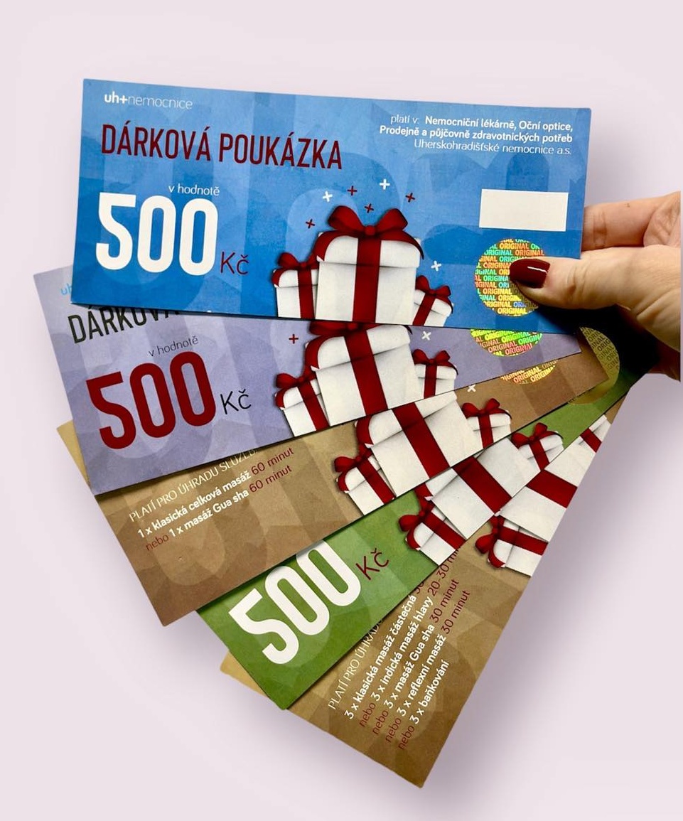 Přemýšlíte, čím na narozeniny, svátek, výročí či Vánoce obdarovat své nejbližší, kamarády či známé? Uherskohradišťská nemocnice nabízí řešení v podobě dárkových poukazů, které je možné uplatnit hned v několika provozovnách a na vybraných odděleních.