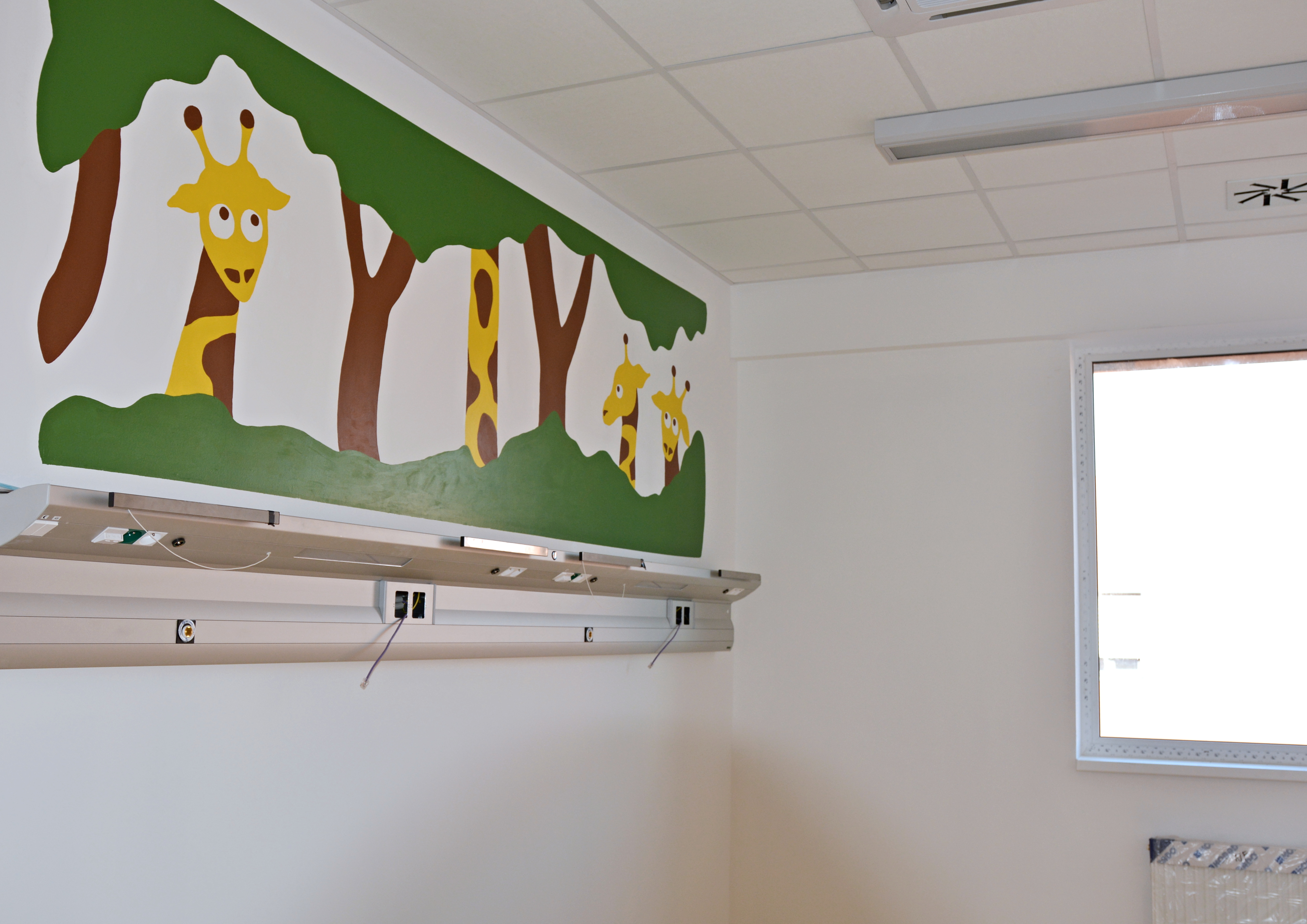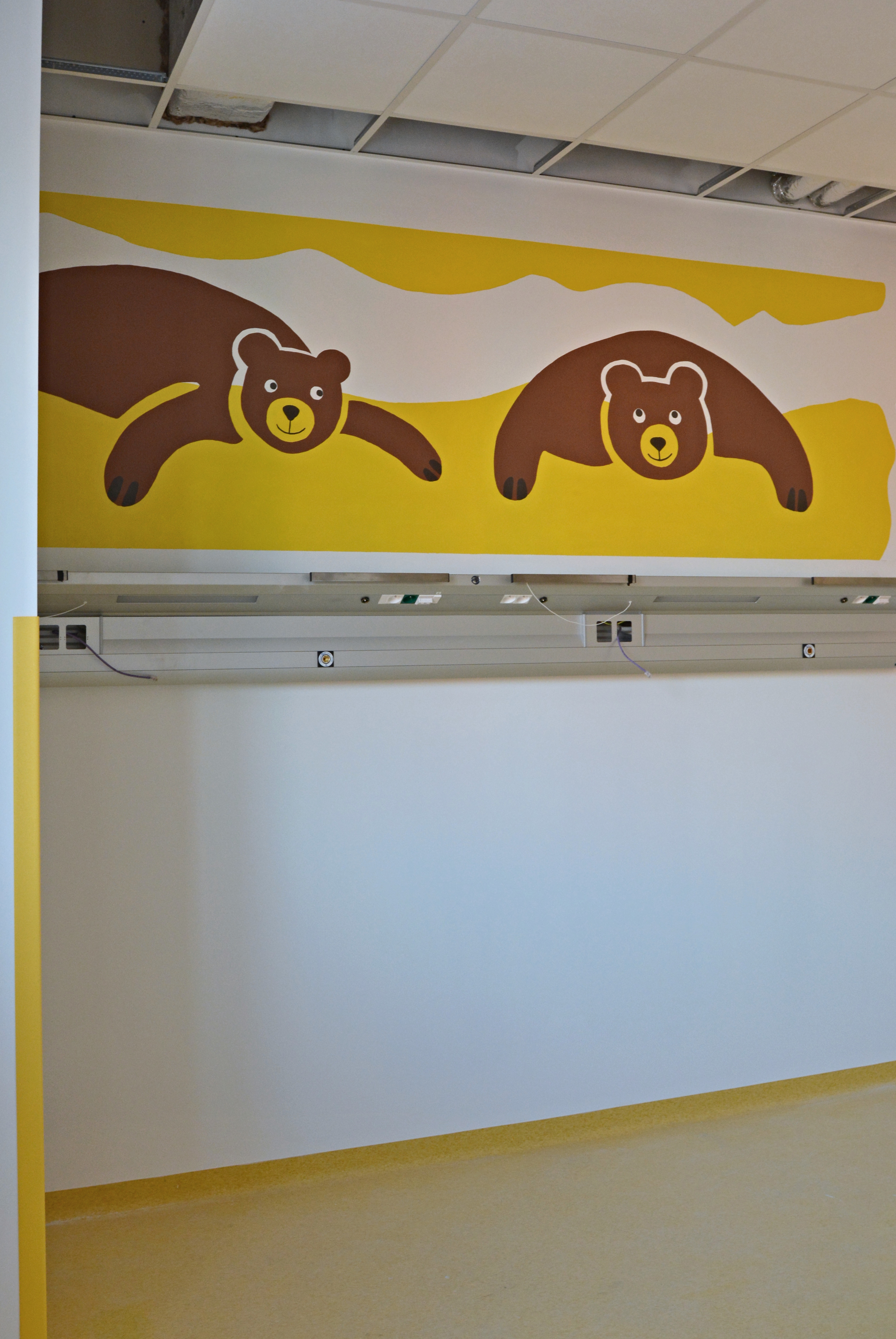 Nástěnné malby doplní ještě velkoplošné nálepky na dveřích, které budou ve shodných motivech s malbami pokojů. „Děti se tak u nás budou lépe orientovat. Budou bydlet třeba u velryby, žirafy nebo třeba u medvěda. Chtěli jsme, aby výzdoba byla jednoduchá, vkusná a originální. A to se, myslím, opravdu povedlo,“ shrnuje spolupráci doktorka Baroňová.