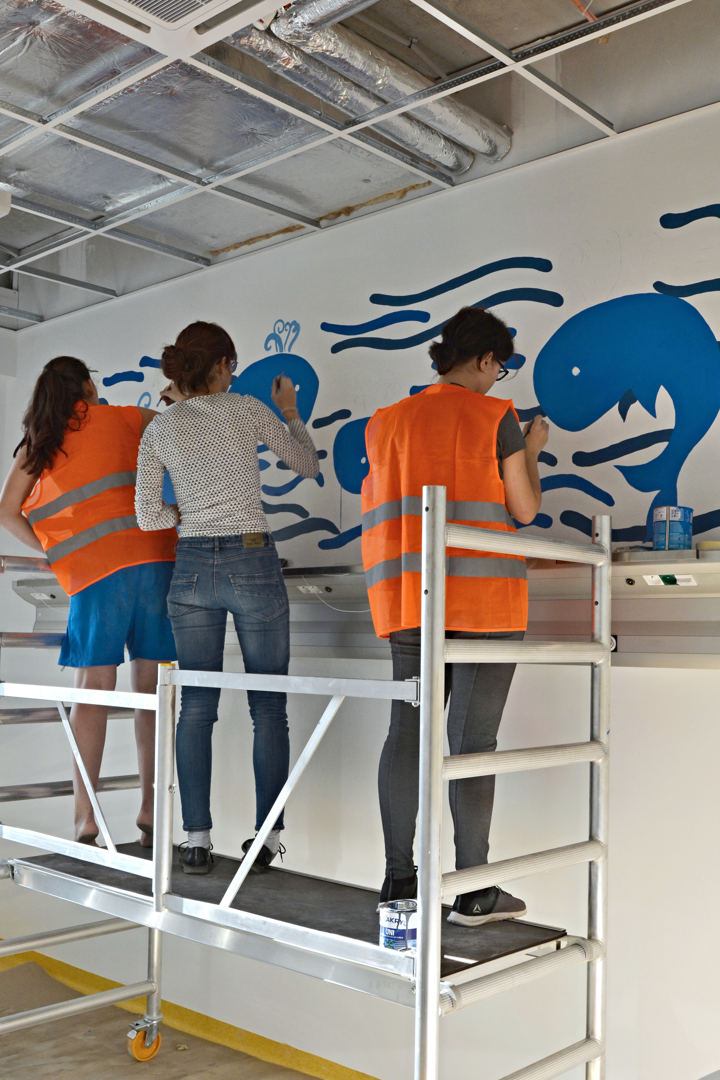 Akce vyžadovala spolupráci dvou studijních oborů – užité malby a grafického designu. Žáci druhého ročníku grafického designu pod vedením Františka Petráka připravili návrhy, žáci třetího ročníku oboru užité malby pod vedením Martina Dvořáka a vedoucího oboru Miroslava Maliny výmalbu realizovali. „Plánování spolupráce probíhalo naštěstí s velkým předstihem, neboť škola nefunguje jako firma, kdy si zadavatel zadá úkol a do určitého termínu ho má splněný. Museli jsme zabezpečit, aby zadání odpovídalo výstupům, které mají žáci ve vzdělávacích programech, a zapojili jsme žáky, kteří jsou schopni takovou zakázku realizovat. Odborné praxe by ale měly být nedílnou součástí středního uměleckého vzdělávání,“ doplnil informace Ivo Savara.