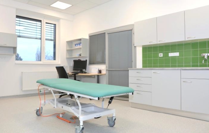 noční stolek, stůl a židle. Pacienti mohou pro úschovu osobních věcí využít