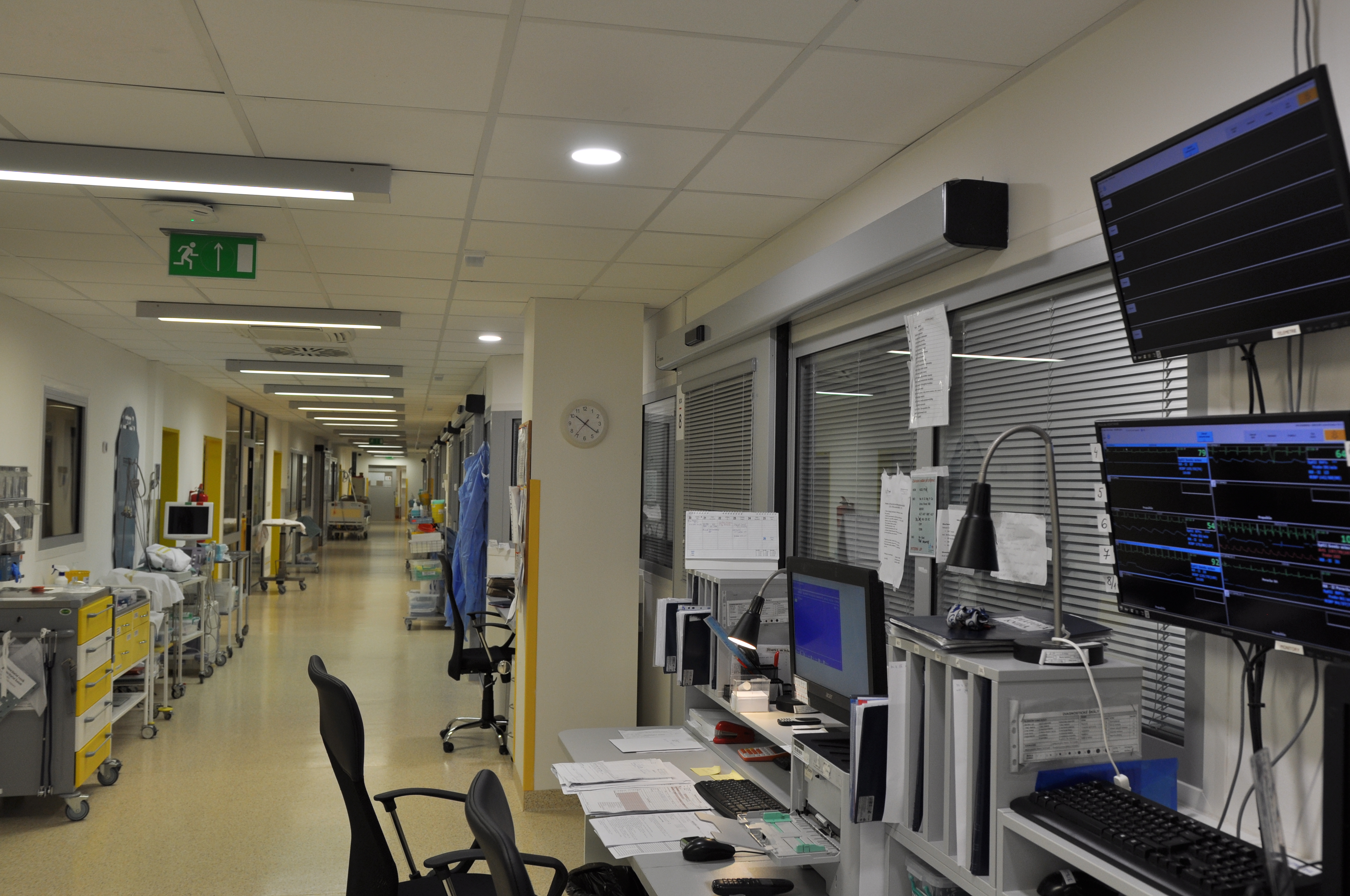 Na JIP interního oddělení je poskytována péče pacientům s akutními stavy interního typu - s rizikem selhání či již rozvinutým selháním orgánových funkcí. Oddělení je vybaveno komplexní monitorovací jednotkou (včetně možnosti telemonitoringu), vysokoprůtokovou nasální oxygenoterapií (HFN0), ventilátory k poskytování invazivní i neinvazivní plicní ventilace a také dialyzační jednotkou k provádění kontinuální dialýzy. Skiaskopický sál na CO I. je využíván k zavedení dočasné kardiostimulace.
