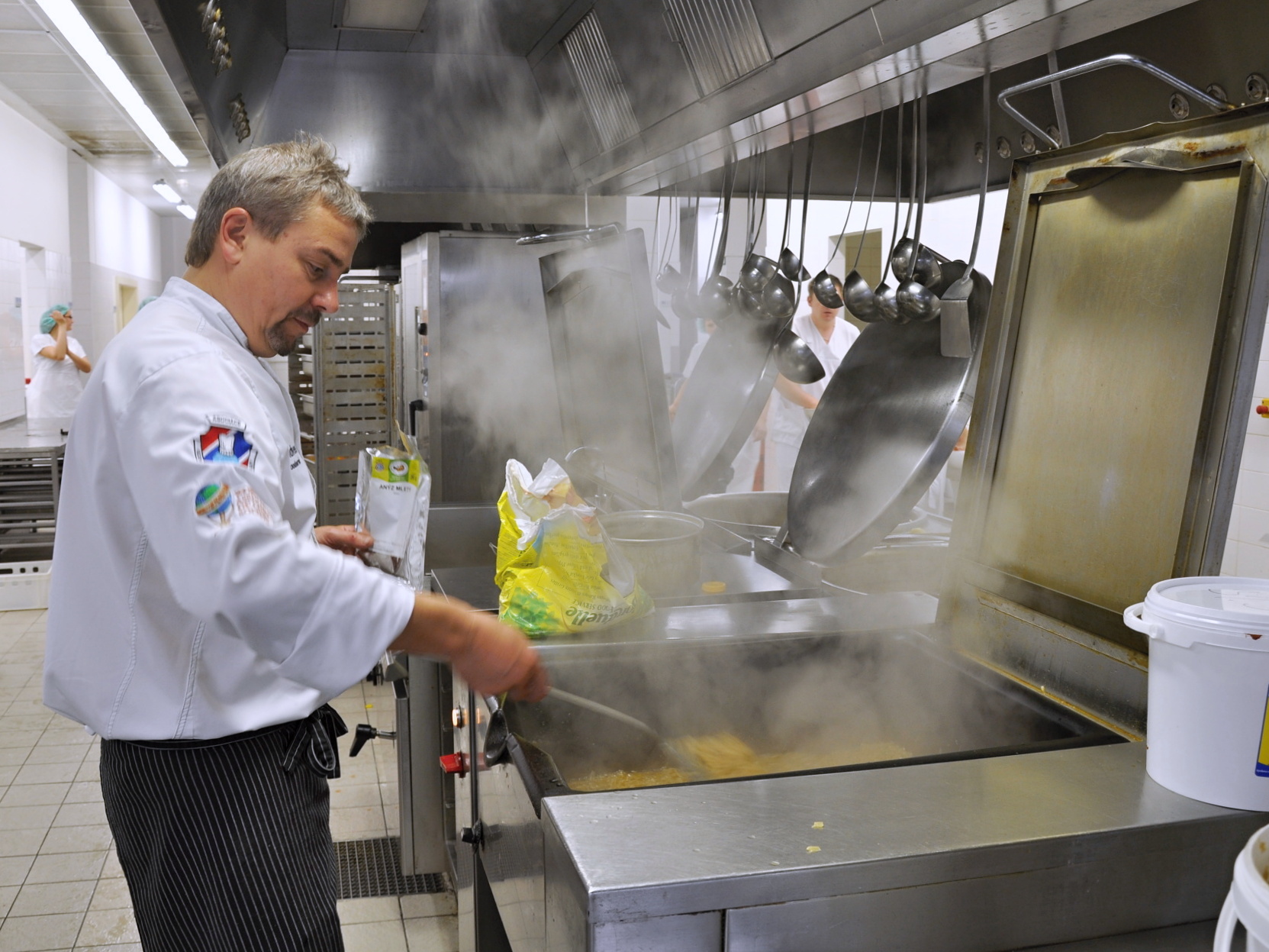 V kuchyni Uherskohradišťské nemocnice vařila v pátek 15. května firma Nowaco, respektive její kuchař Petr Janů. Za asistence nemocničního personálu kuchyně vařil výběrové jídlo pro zaměstnance nemocnice a dia jídlo pro pacienty.
