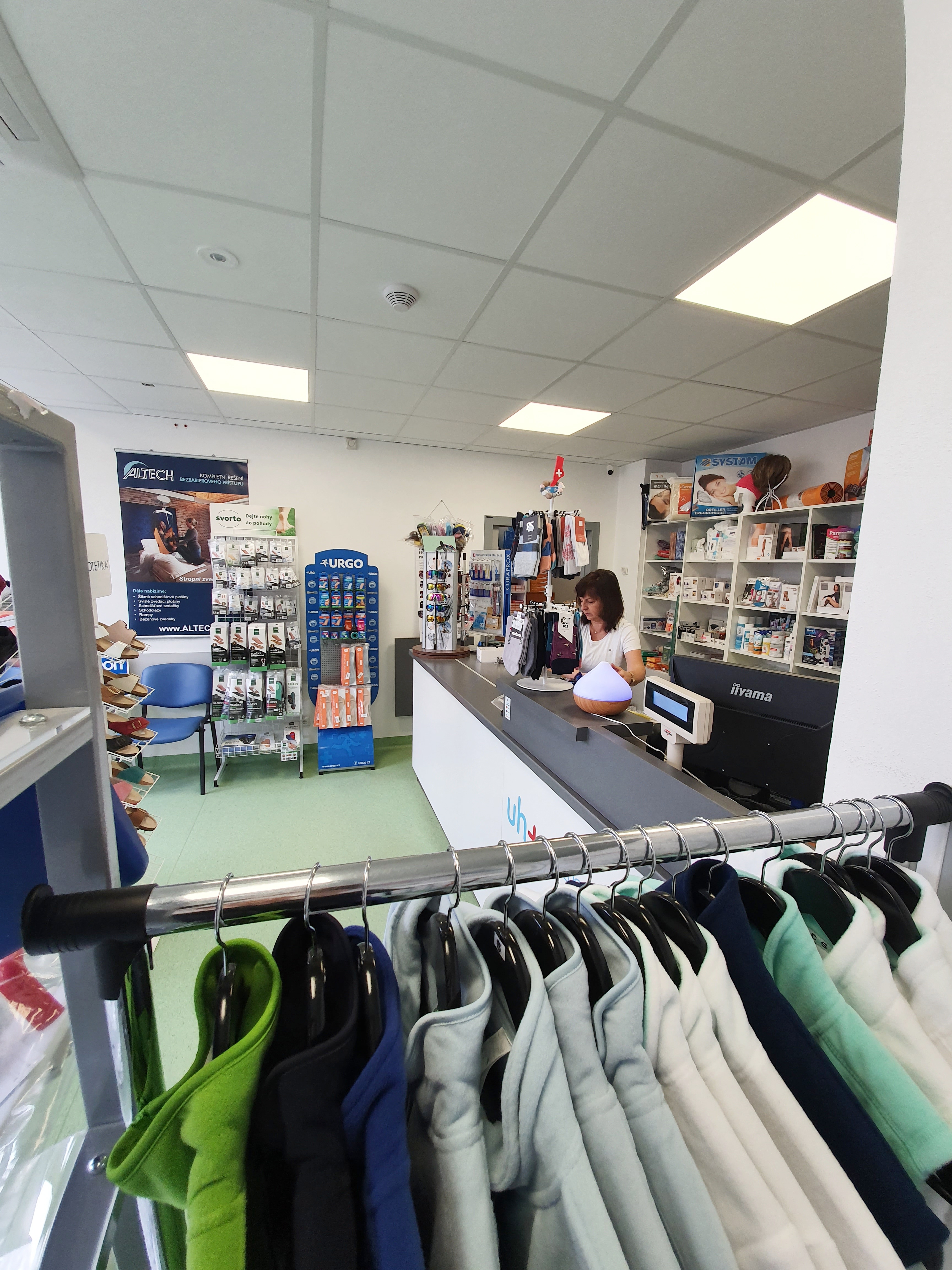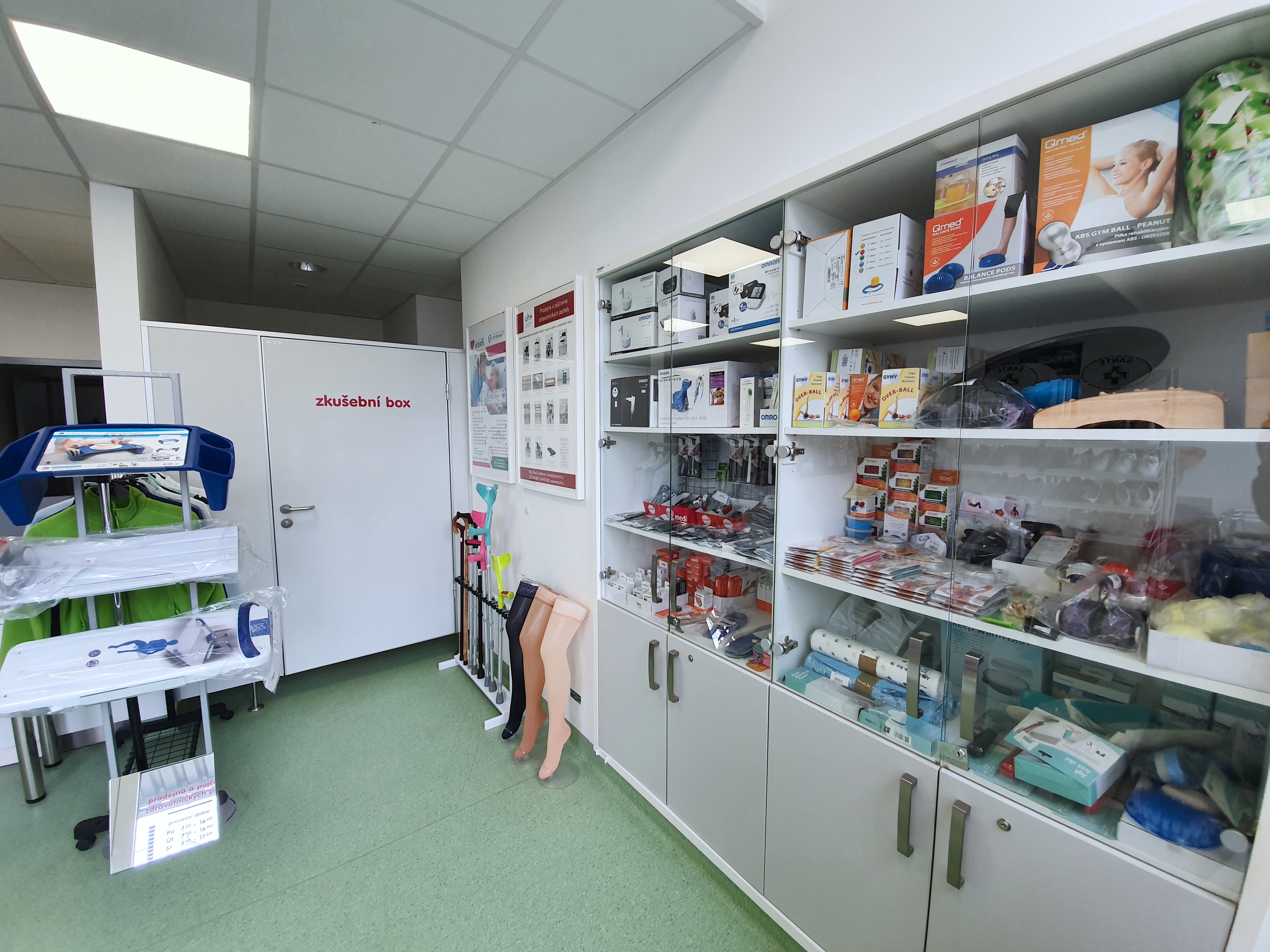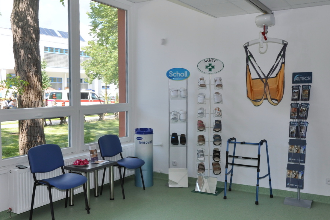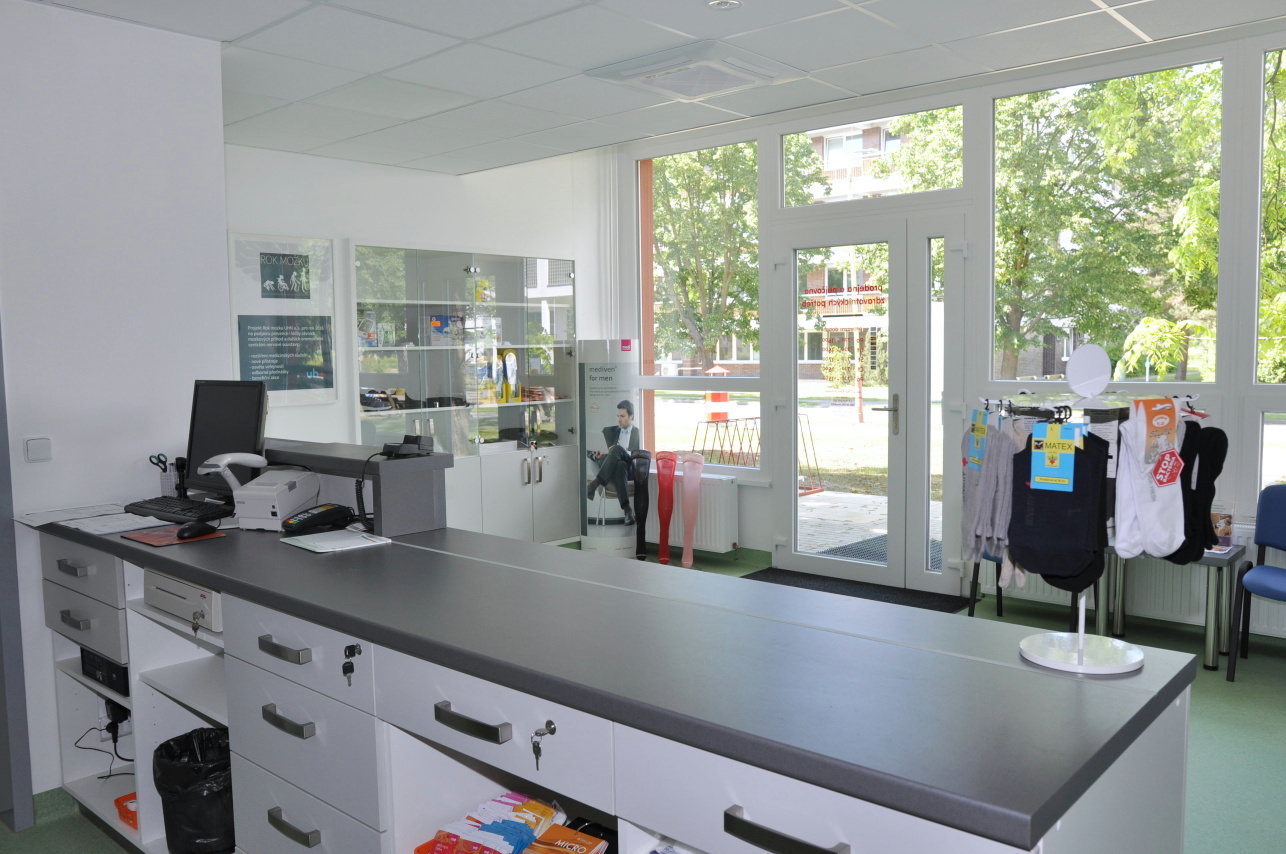 Prodejna nabízí širokou škálu zdravotnických běžných potřeb a také novinky pro onkologické pacienty jako jsou prsní epitézy, paruky nebo speciální prádlo. Dále zde můžete najít speciální obuv, ponožky a vložky do bot pro diabetiky nebo chladící obaly na inzulíny. A v neposlední řadě také běžný sortiment jako jsou ortézy, bandáže, pomůcky pro inkontinenci, kompresivní punčochy aj. Samozřejmostí je vydávání zdravotnických pomůcek na poukaz pojišťovny.