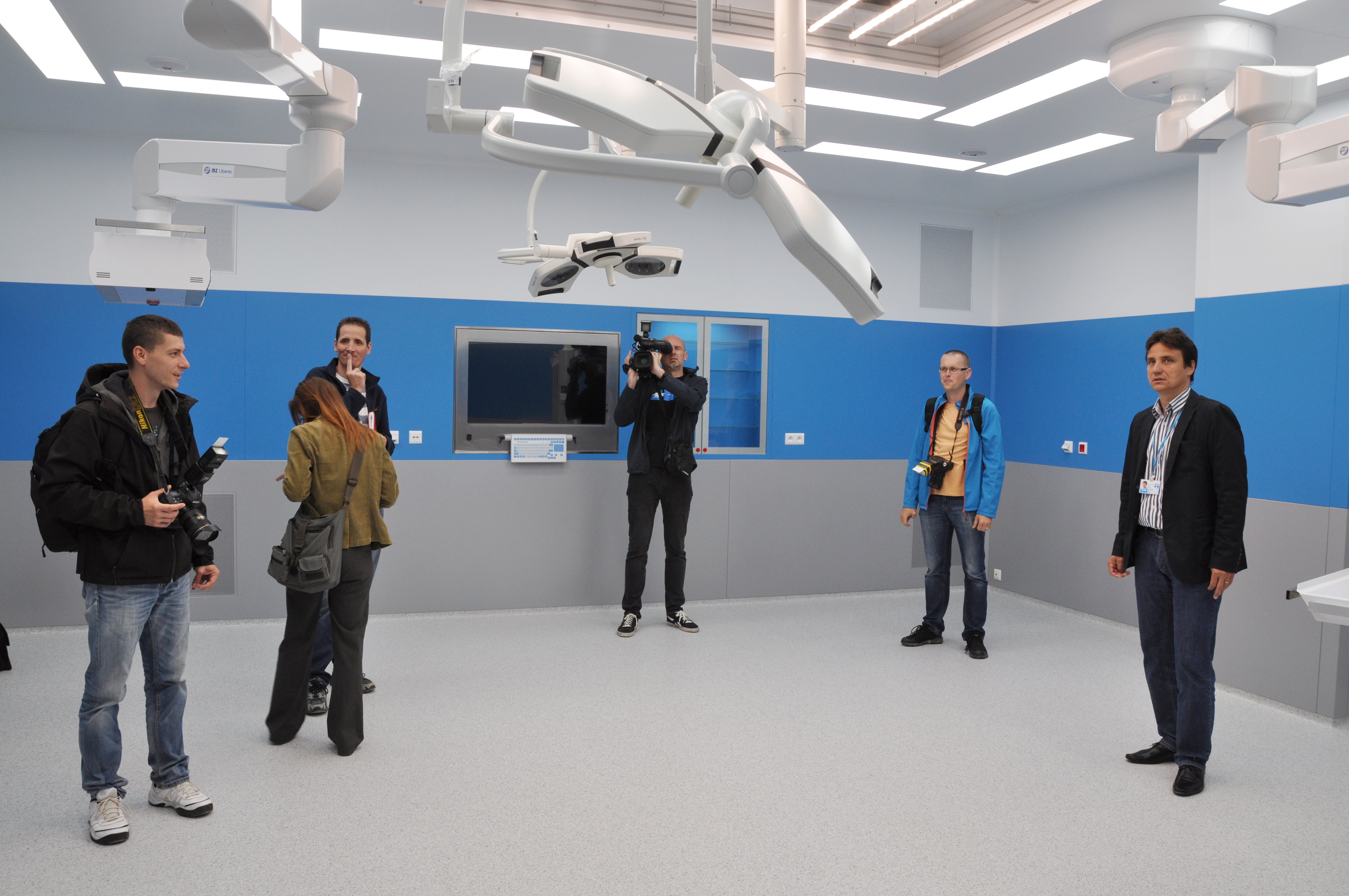 Novináři a fotografové z regionálních i celostátních deníků a týdeníků, ale také zástupci televize a rozhlasu si prošli a prohlédli téměř dokončený centrální objekt chirurgických oborů v Uherskohradišťské nemocnici.
