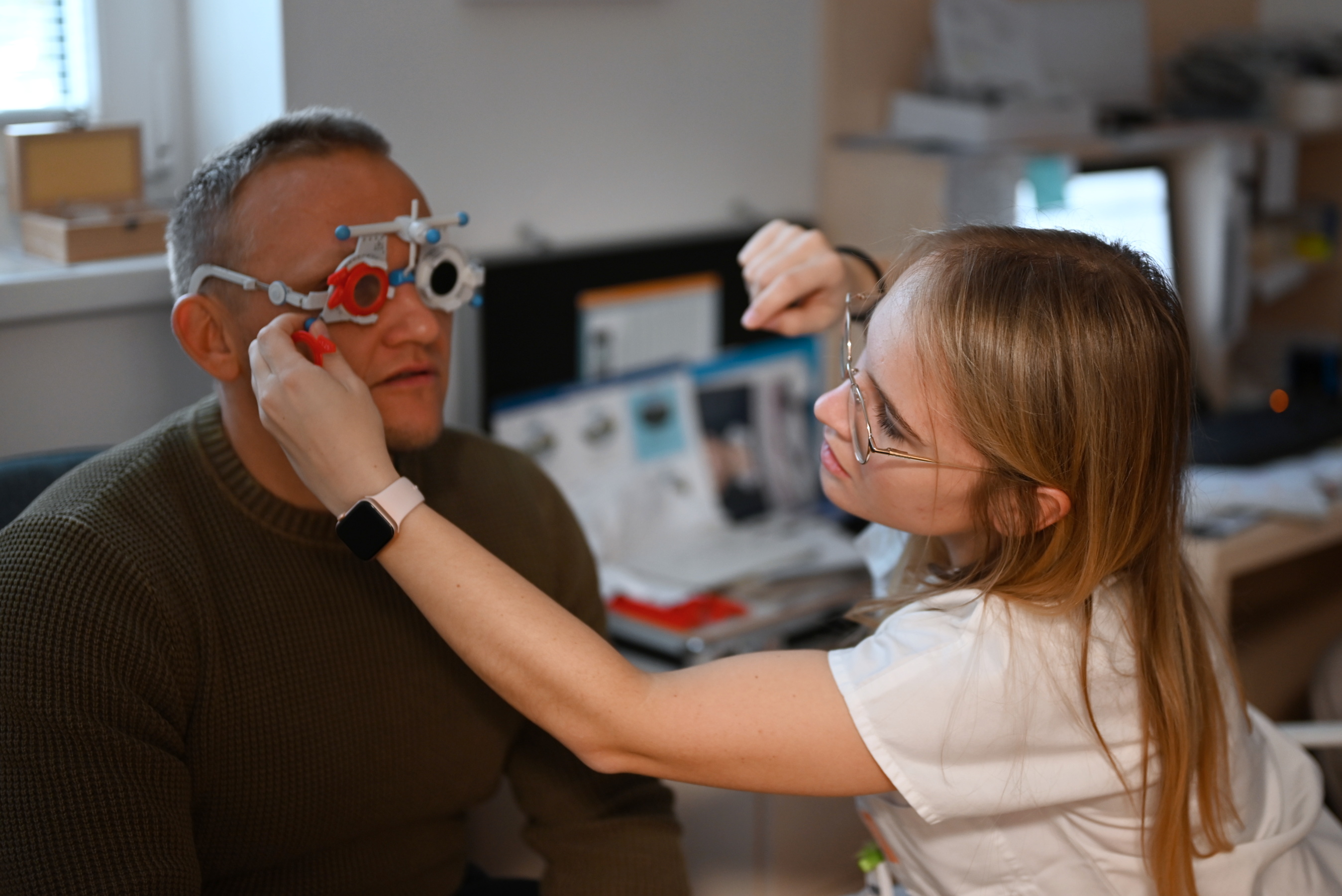 „Příchozím jsme kontrolovali stav očního pozadí a také oční tlak kvůli šedému zákalu. Účastníci nejčastěji přicházeli s přáním zkontrolovat své brýlové korekce, případně předepsat nové brýle. Více, než s problémy s viděním do dálky, jsme se dnes setkali spíše s takzvanou „nemocí krátkých rukou“, kterou přicházeli konzultovat lidé kolem čtyřiceti až padesáti let,“ rekapituloval s úsměvem MUDr. Filip Žácky, primář očního oddělení.