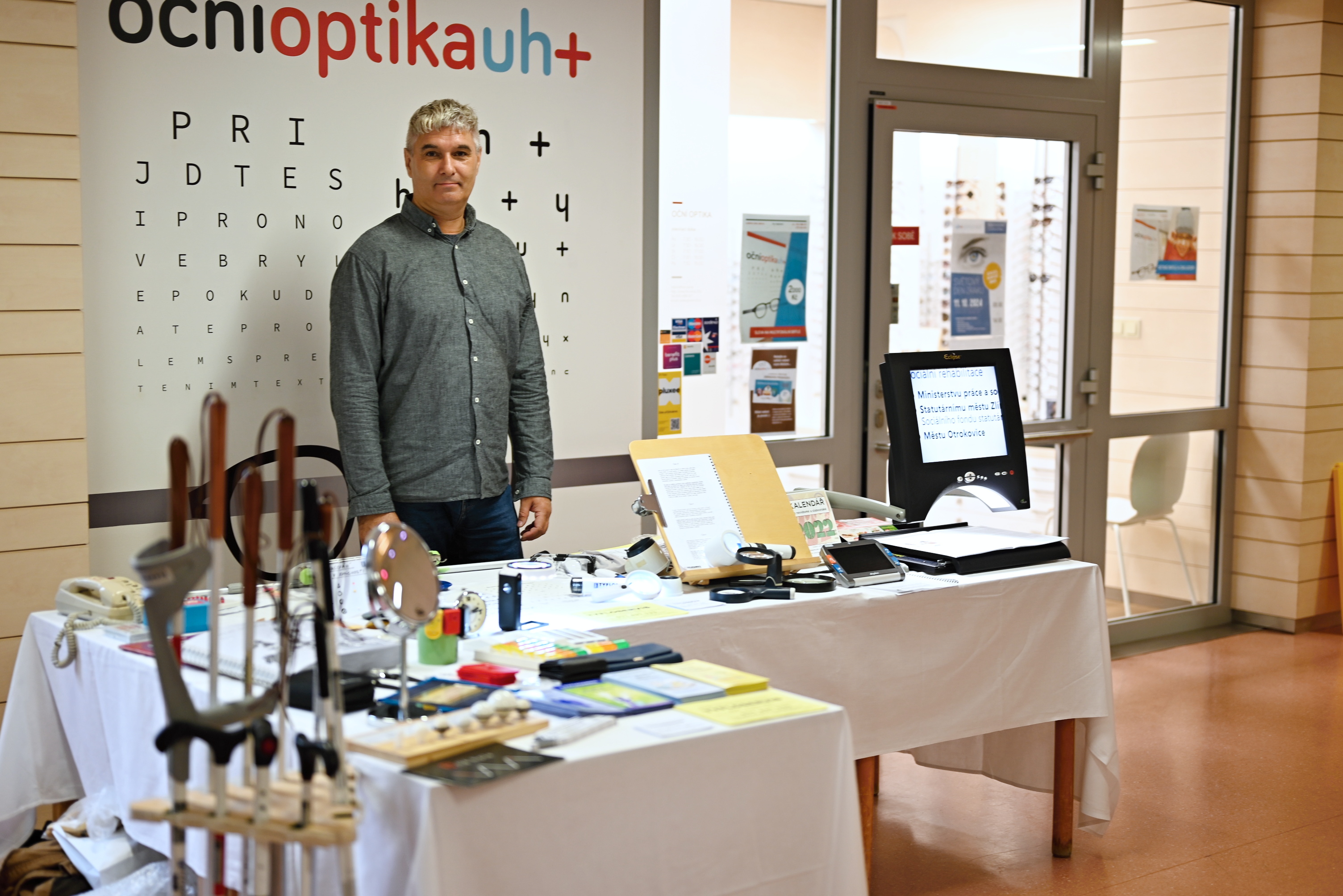 Program během pár hodin navštívilo přes sedm desítek účastníků. Ti se také se zájmem zastavovali u stánku obecně prospěšné společnosti Tyfloservis, kde jim vedoucí Krajského střediska Zlín, Mgr. Petr Mach, přiblížil činnost společnosti i nejrůznější kamerové či optické lupy nebo další pomůcky pro slabozraké i nevidomé, třeba se zvukovým i hmatovým výstupem. „Jsme rádi, že jsme součástí dnešního preventivního programu v Uherskohradišťské nemocnici a že se o nás příchozí aktivně zajímají. S Uherskohradišťskou nemocnicí spolupracujeme rádi. Naše spolupráce se totiž neváže jen k této preventivní akci, ale je dlouhodobá. Vzájemně na sebe odkazujeme pacienty nebo klienty, kterým tak společně můžeme ještě lépe pomoci,“ uzavřel Petr Mach.
