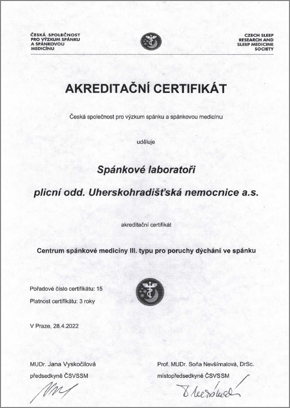 • Akreditační certifikát spánkové laboratoře