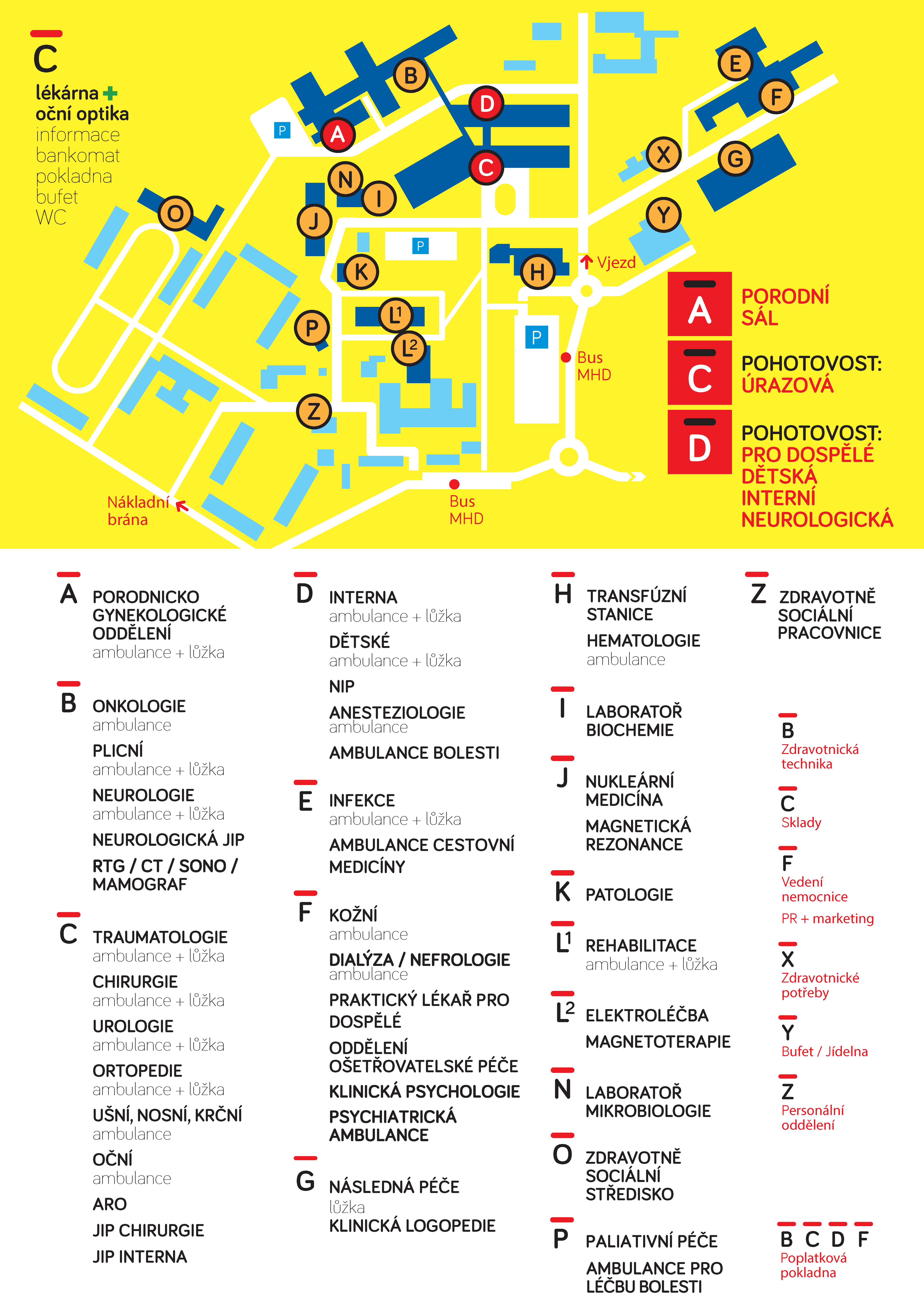 - Vjezd a výjezd do nemocnice je umožněn všem vozidlům hlavní bránou.