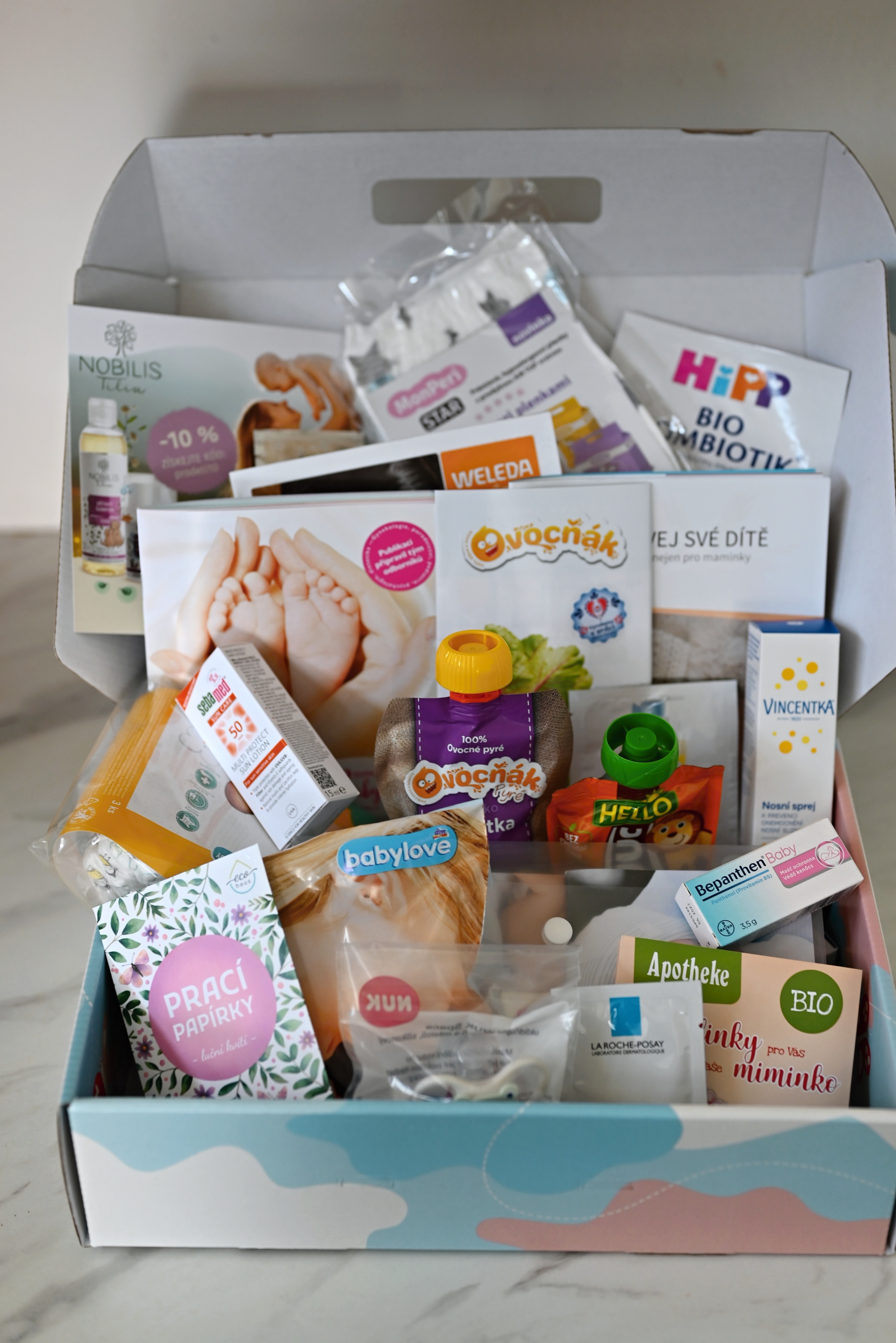 Maminky uvnitř najdou vzorky krémů pro děti, ovocné šťávy, vzorky plen, prsní vložky, vzorek kojeneckého mléka, dudlík nebo zdravé nosní kapky. Nechybí také slevové poukázky a edukativní materiály.