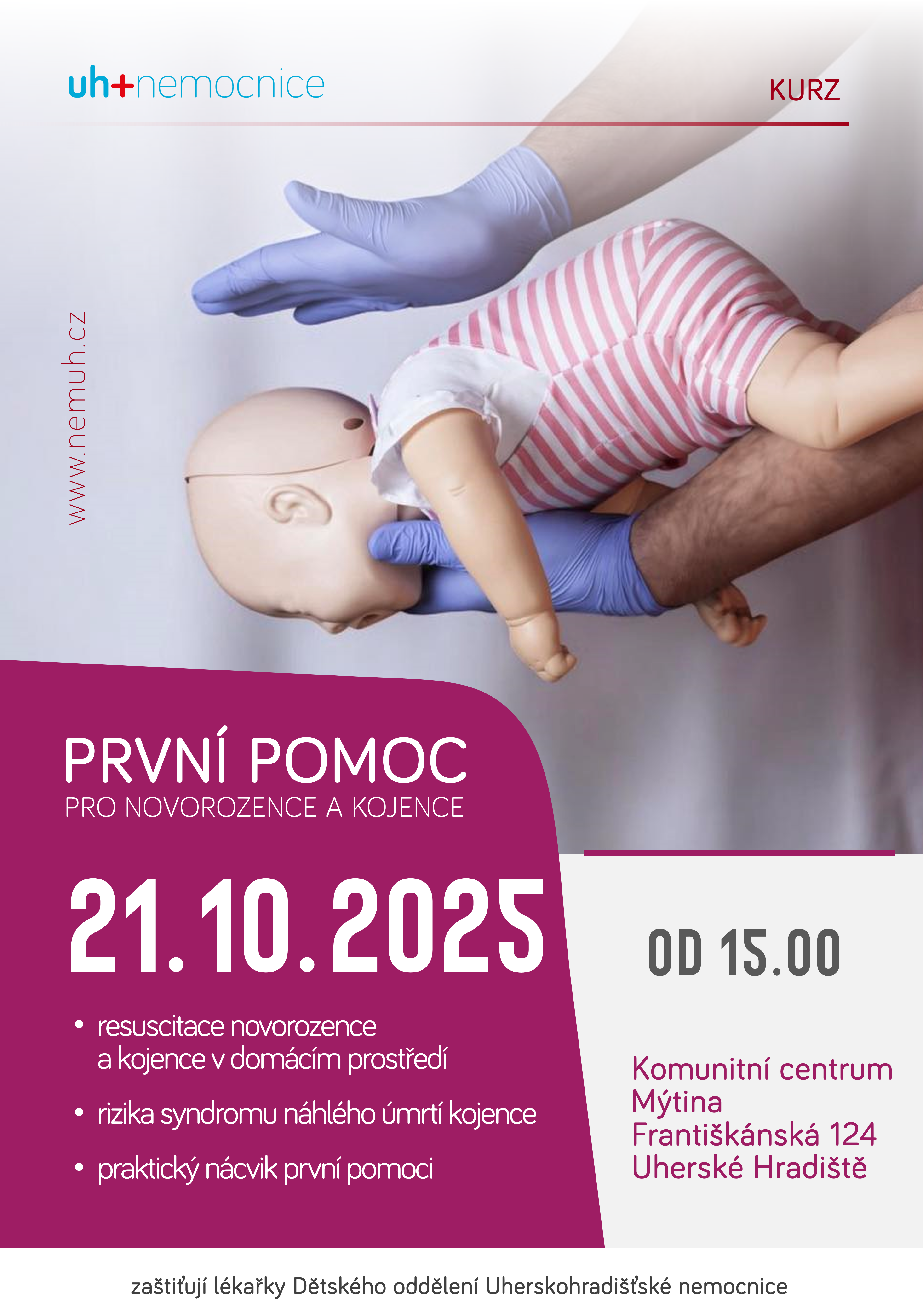 Podzimní repríza kurzu první pomoci miminkům se uskuteční v úterý 21. října od 15 hodin. Prostory pro akci tentokrát poskytne nedávno otevřené komunitní centrum Mýtina na Františkánské ulici v Uherském Hradišti.