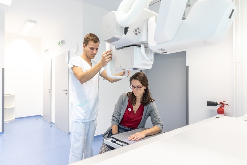 Rentgen (budova B, 2. NP). Není v provozu registrace, můžete tedy přejít přímo do čekárny RTG, která se nachází vpravo za pracovištěm CT.