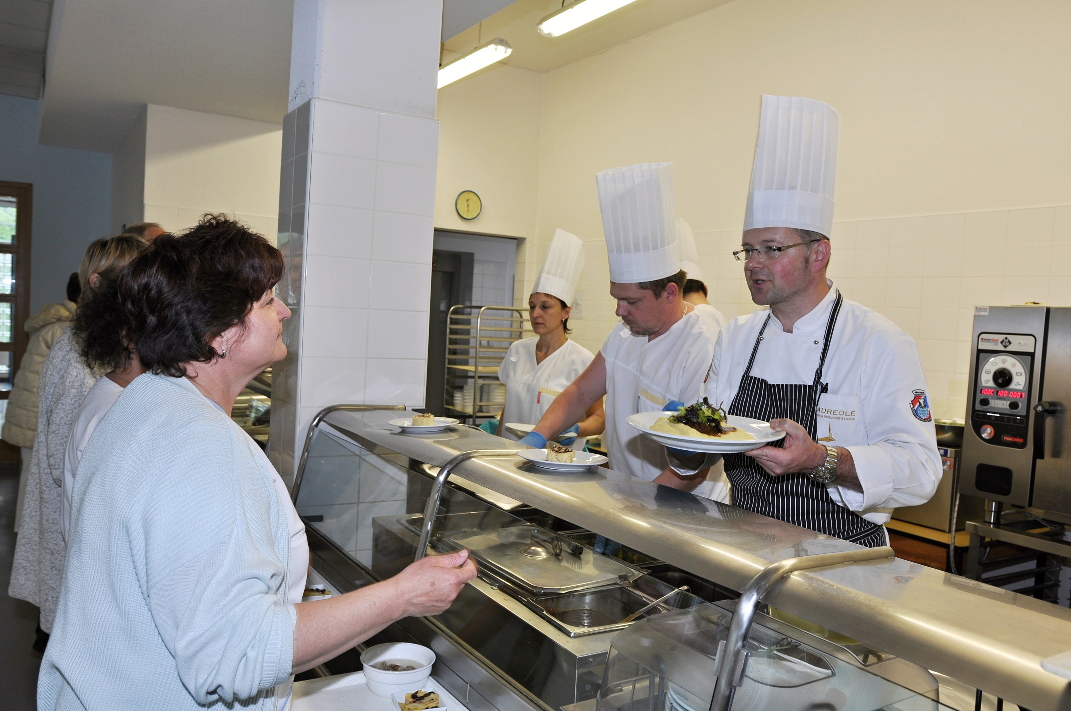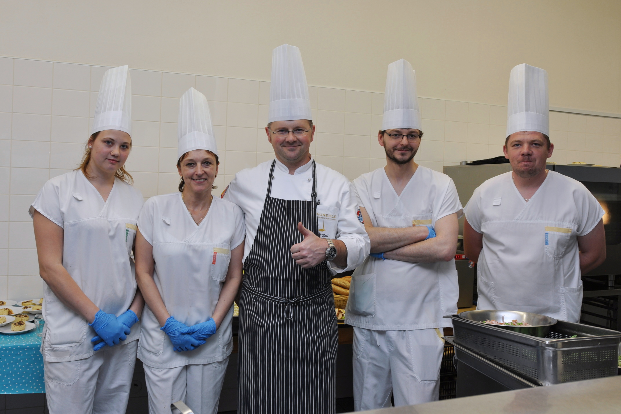 Šéfkuchař pražské restaurace Aureole Jiří Král opět pomáhal týmu kuchařů v Uherskohradišťské nemocnici s nastavením jídelníčku na další sezónu. A také spolu s nimi vařil.
