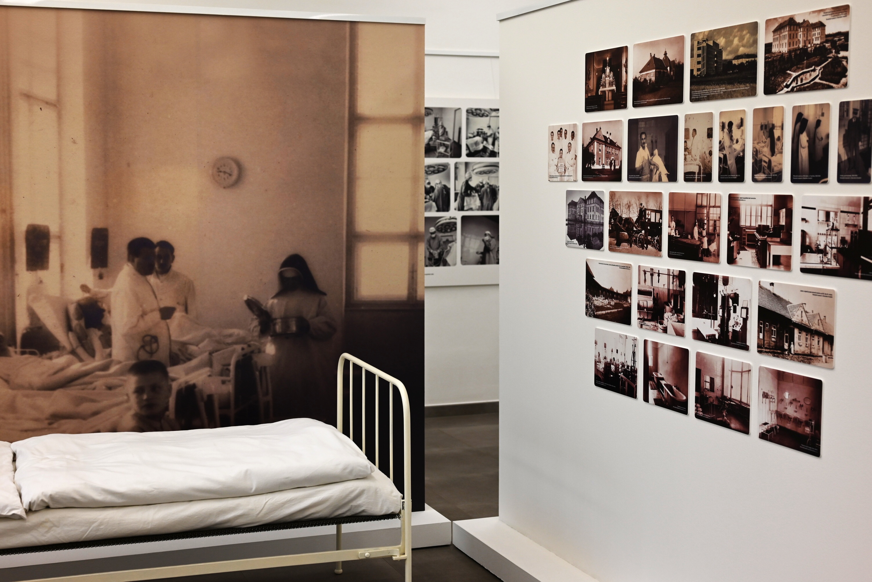 Součástí výstavy jsou dobové fotografie, historické předměty a dokumenty, které ilustrují klíčové momenty od ošetření prvního pacienta v roce 1924, přes rozšiřování služeb a lékařské péče, až po modernizaci jednotlivých budov a oddělení.