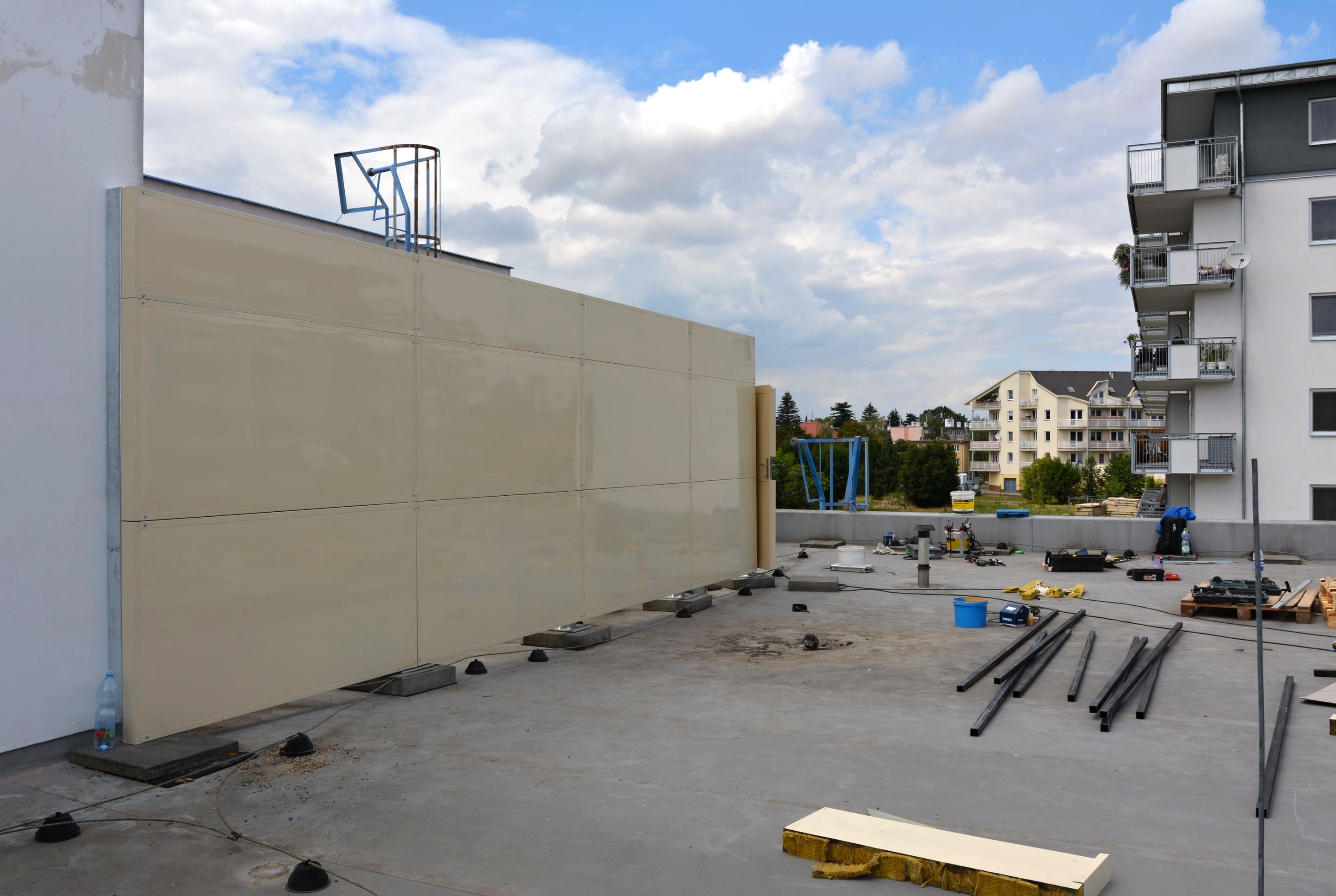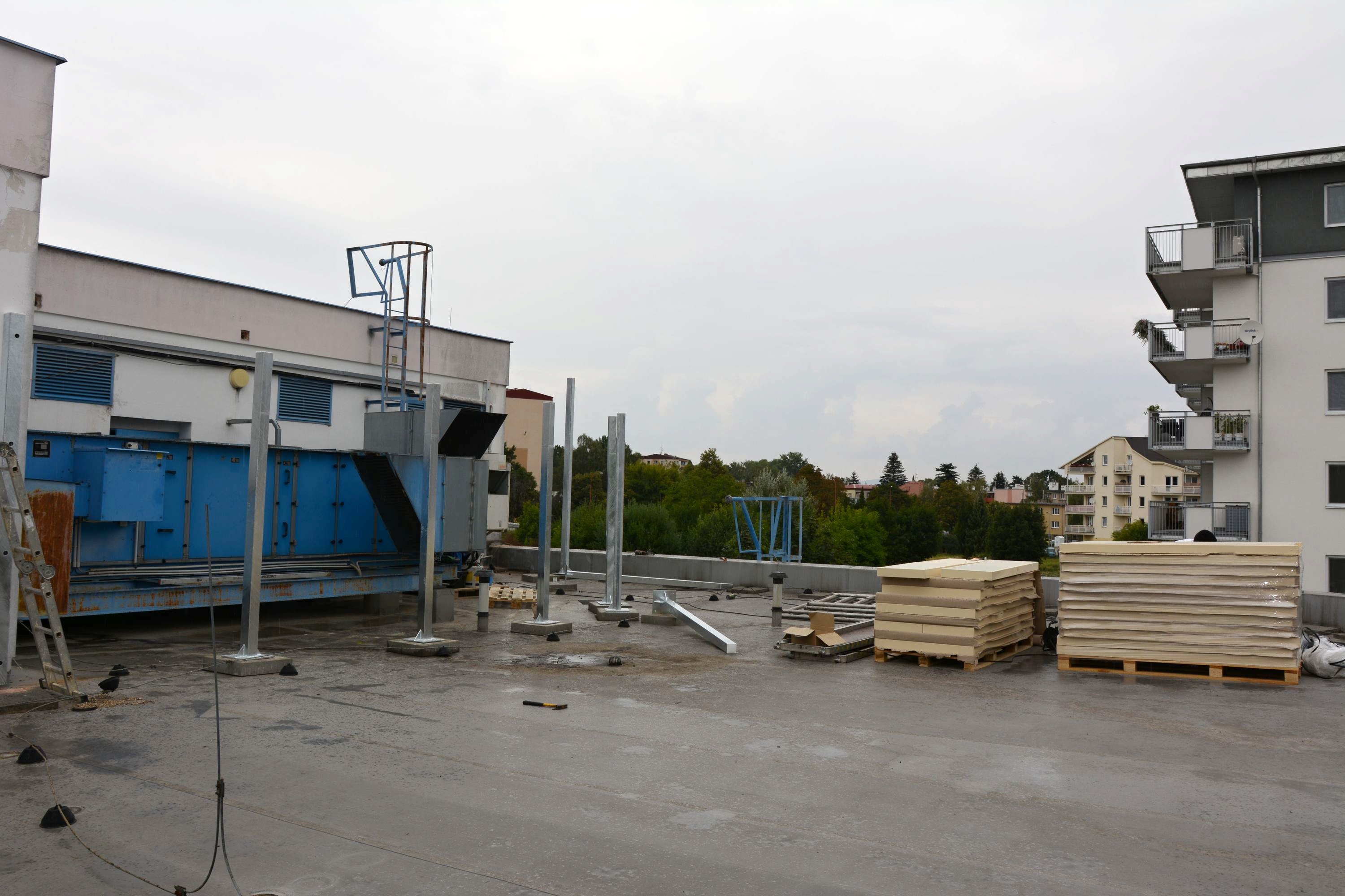 V těchto dnech rostou na střeše nemocniční jídelny speciální panely. Jejich úkolem je podstatně snížit hlučnost vzduchotechniky zdejší kuchyně. Nemocnice tak vychází vstříc žádosti zhotovitele bytových domů v těsné blízkosti svého areálu.