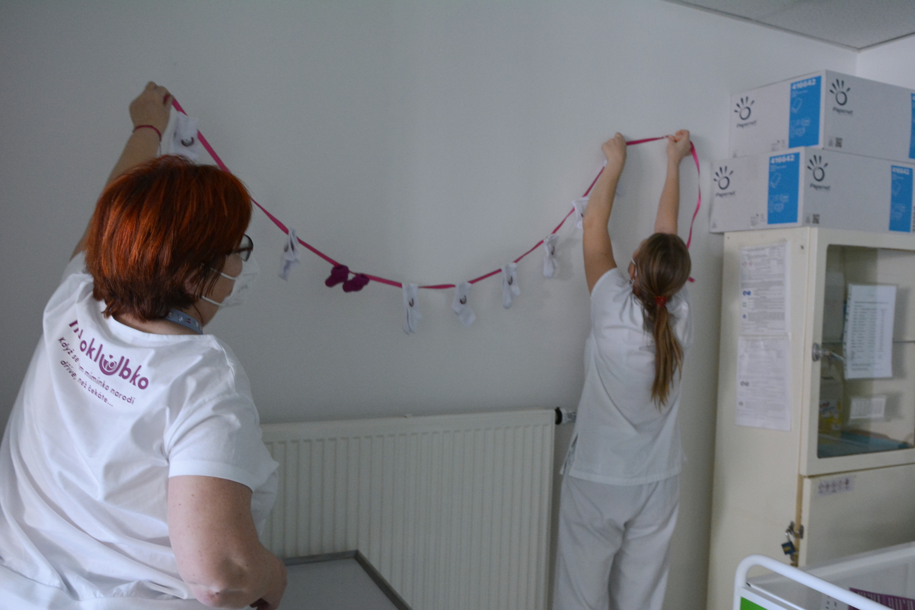 „Oficiálně připadá Mezinárodní den předčasně narozených dětí na 17. listopad, my jej však slavíme v duchu naší organizace o den dříve. Letošním symbolem se stal řetěz složený z maličkých ponožek. Kromě něho jsme pro děťátka přichystali háčkované chobotničky, čepičky a mnoho dalších dárečků včetně váhy pro novorozence.