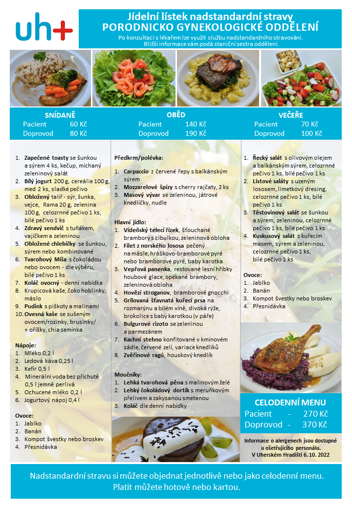• Jídelní lístek nadstandardní stravy