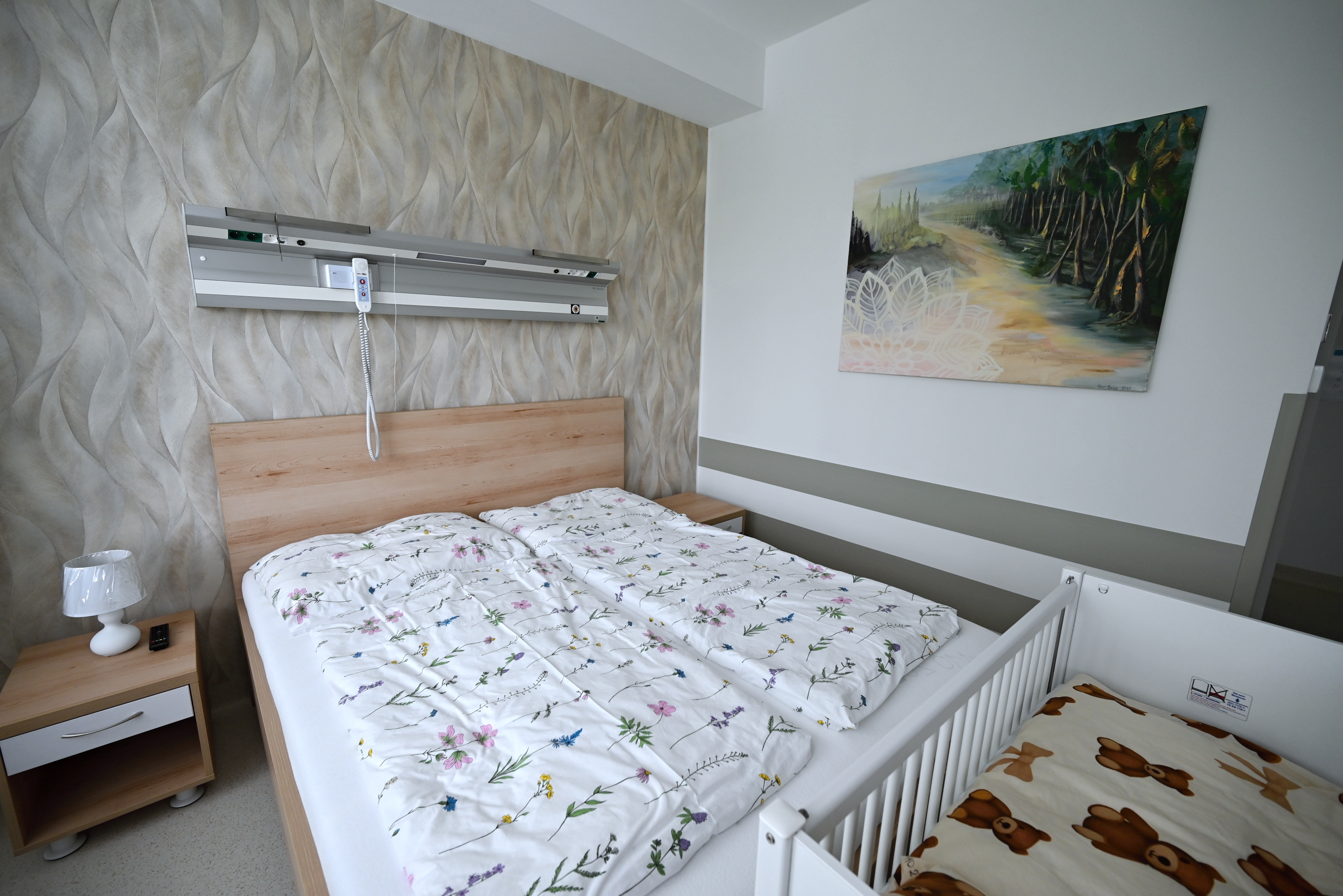 Oddělení se zabývá péčí o ženy po porodu. Pobyt je zajištěn ve dvoulůžkových pokojích s vlastním sociálním zařízením a výbavou pro péči o dítě, k dispozici je také bezbariérový pokoj. Za poplatek je možné využít 4x jednolůžkový nadstandardní pokoj. Nově jsme pro Vás v roce 2025 otevřeli 2 rodinné pokoje, kde se mohou maminky ubytovat společně se svými rodinnými příslušníky.