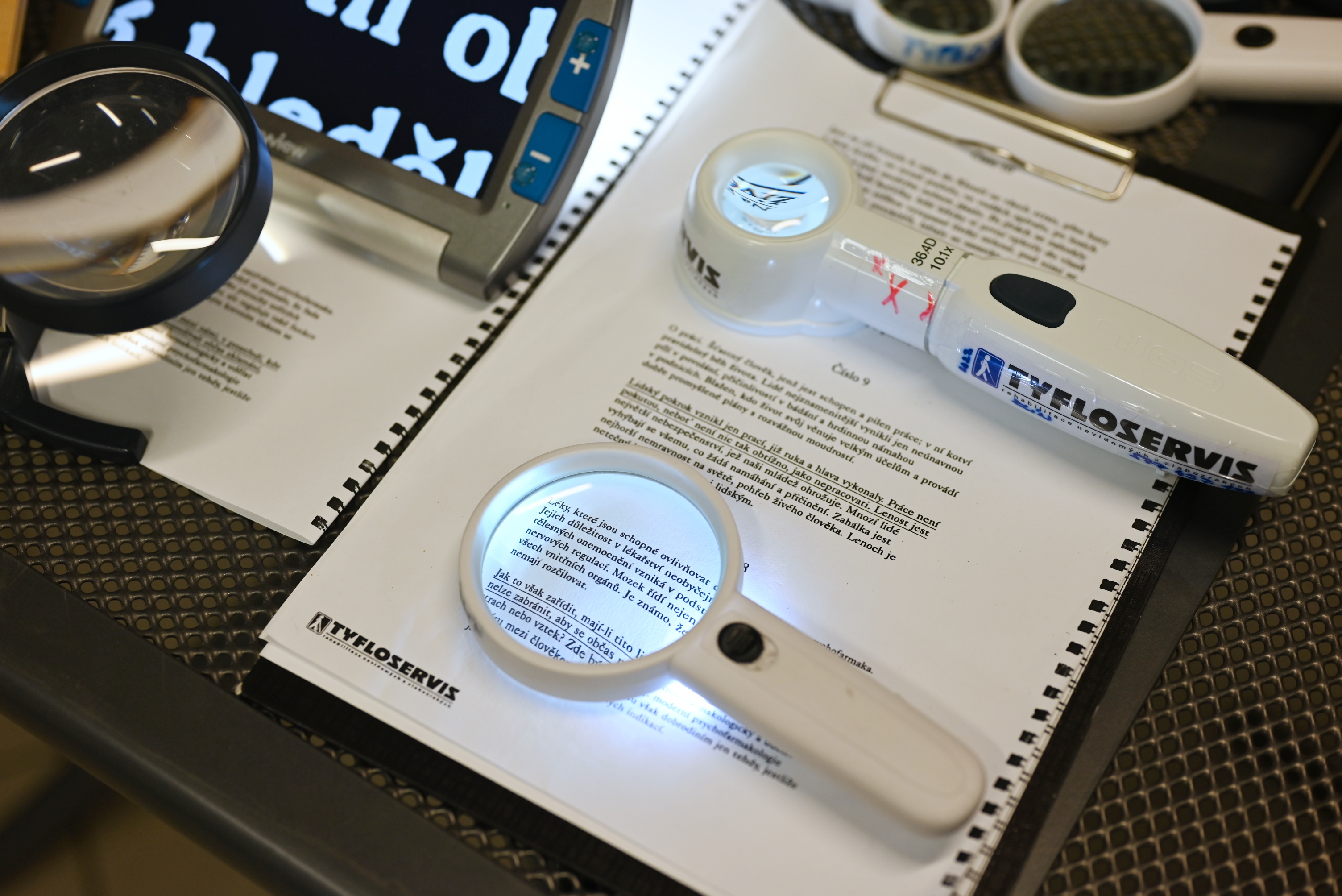 „Asi největší novinkou mezi pomůckami pro slabozraké nebo nevidomé je tlačítkový telefon s umělou inteligencí, který je pro naše klienty komfortnější než klasické chytré telefony. Dnes se u nás zastavili návštěvníci, kteří se zajímali o nejrůznější pomůcky pro slabozraké. A naše speciální lupy například zaujaly i jednoho filatelistu,“ shrnul s úsměvem Mgr. Petr Mach, vedoucí krajského střediska Tyfloservisu ve Zlíně.