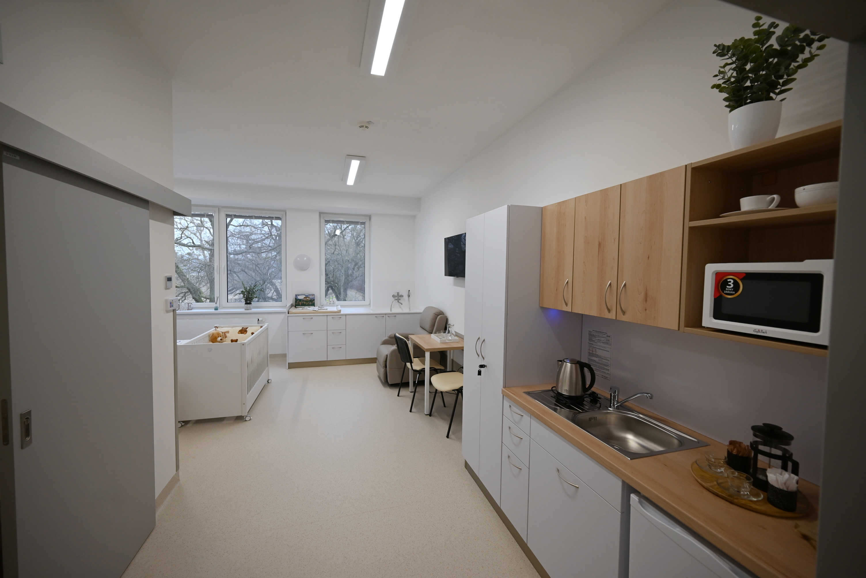 Chcete tatínka nejen u porodu, ale během celého pobytu v porodnici? V Uherskohradišťské nemocnici to není vůbec žádný problém. Nová přístavba porodnicko gynekologického oddělení, která se otevírá právě v těchto dnech, přinesla prostor pro krásné rodinné pokoje s manželskou postelí i možnou přistýlkou pro staršího sourozence. Nechybí pohodlné polohovatelné křeslo pro kojení a přebalovací pult, na nějž navazuje zabudovaná vanička pro koupání miminka. Veškeré péče o novorozené děťátko se tak může i tatínek účastnit hned od prvních dní a celá rodina může prožívat ty nejdůležitější okamžiky začátku nového života společně.