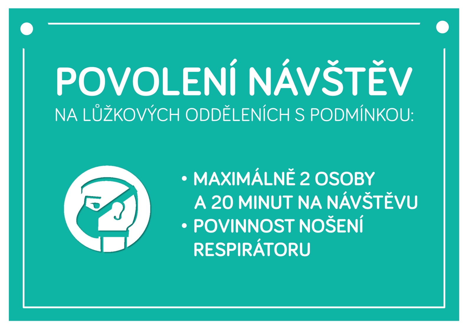 „Od dnešního dne bude opět možné navštívit své hospitalizované příbuzné a známé, a to za dodržení těchto podmínek: u pacienta mohou být současně maximálně 2 osoby, doba návštěvy bude povolena v intervalu 20 minut, navštěvující osoby jsou povinny použít respirátor,“ sdělila konkrétní podmínky Mgr. Jitka Bílková, náměstkyně pro nelékařské zdravotnictví a kvalitu.
