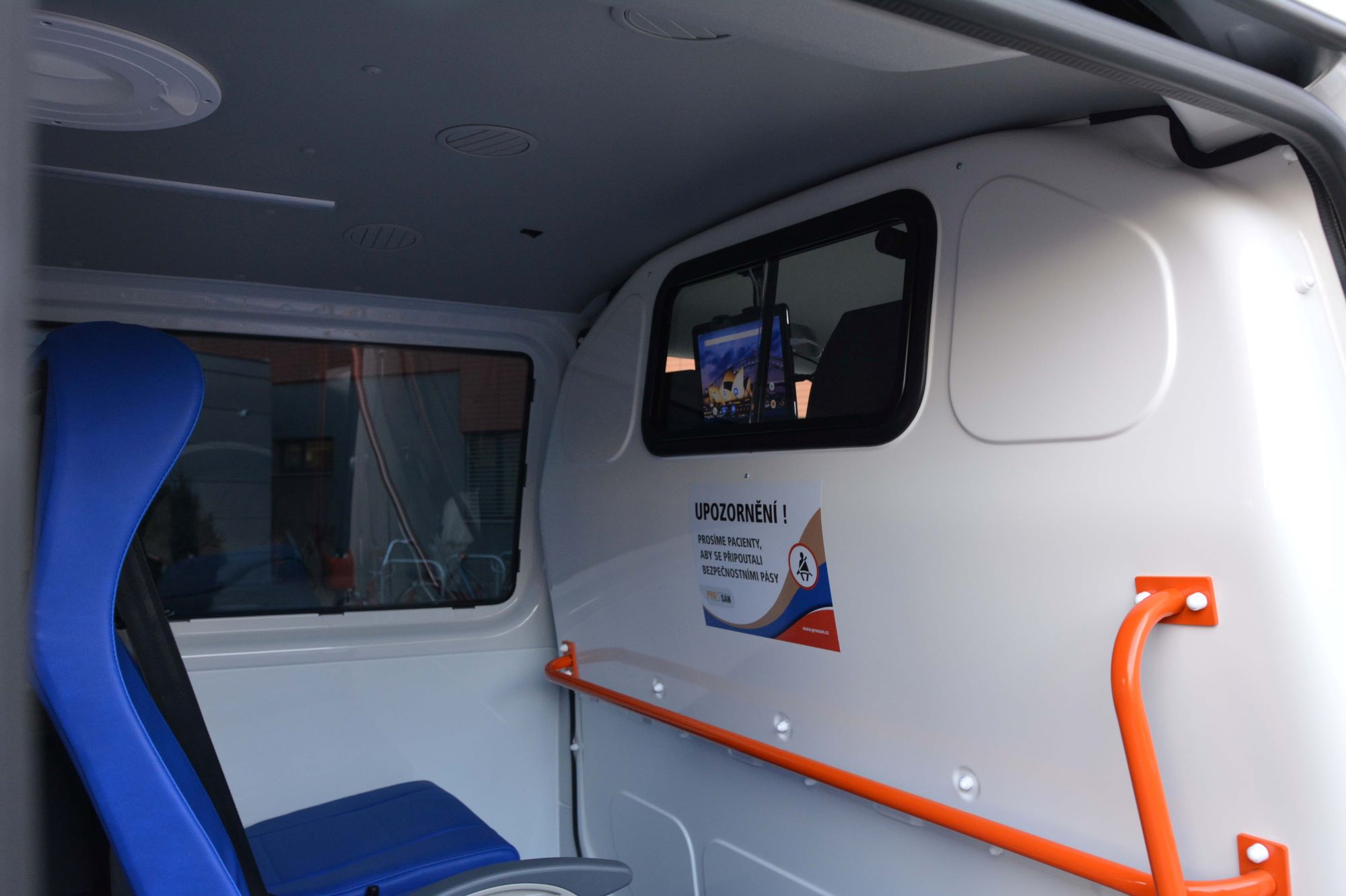 Důležité jsou podle jeho slov i bezpečnostní prvky. „Pacienti logicky vnímají hlavně pohodlí při jízdě, my ale klademe důraz také na jejich bezpečí během převozu. Proto jsou oba nové sanitní vozy vybaveny také například přídavnými couvacími světly pro lepší viditelnost, ale i zadní couvací kamerou, která pro lepší přehled řidiče promítá prostor za sanitou do zpětného zrcátka, aby nedošlo ke zranění osob nebo pacientů pohybujících se za vozem při couvání,“ doplnil Vlastislav Blizňák.