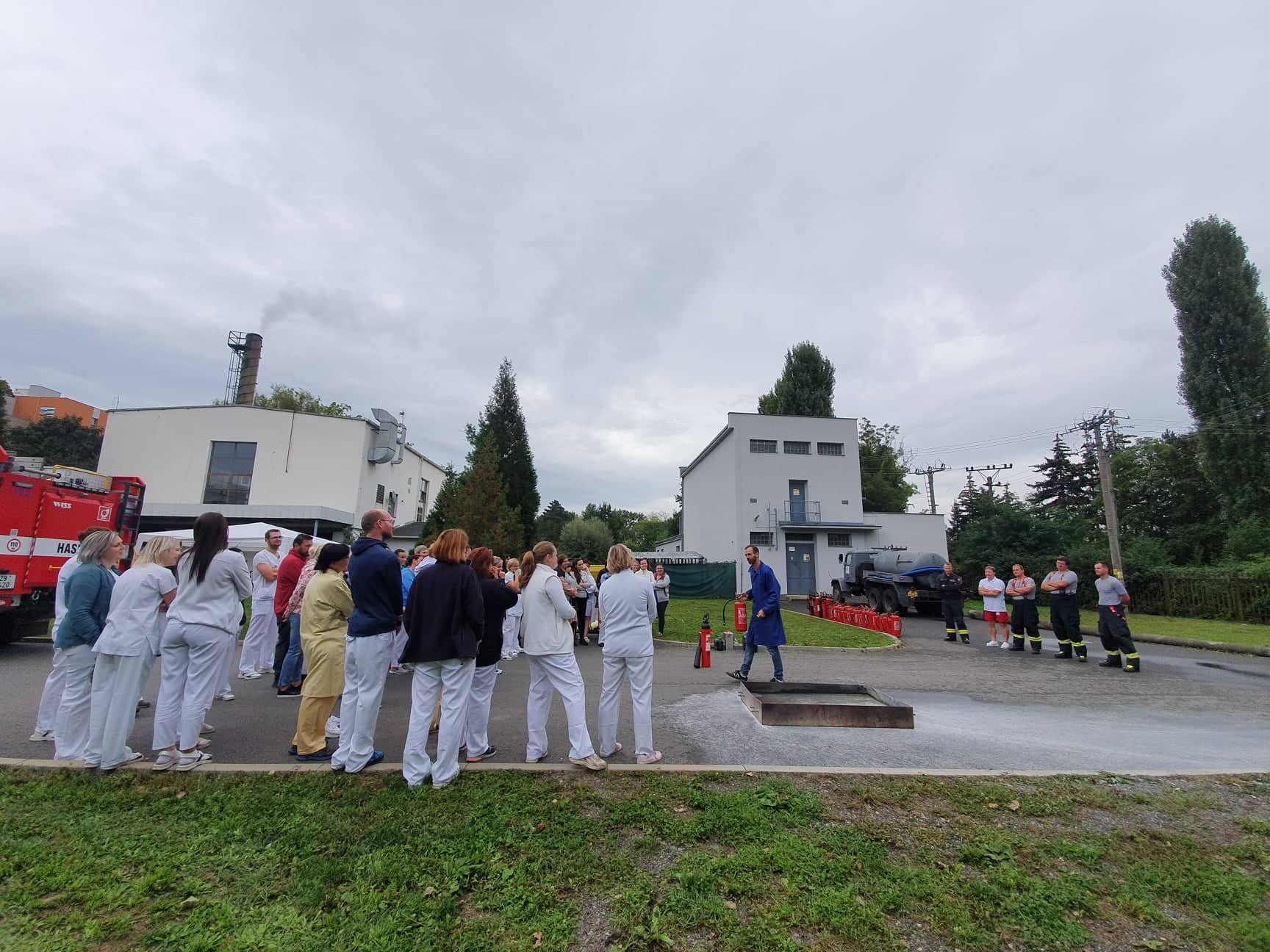 Školení preventivních požárních hlídek probíhá v Uherskohradišťské nemocnici pravidelně. Více než šest desítek zaměstnanců bylo tímto praktickým cvičením připraveno na zvládnutí případných náročných a nečekaných situací, které musí zvládat i v tak náročném provozu, jakým je nemocnice. „V připravené nádobě byla namíchána hořlavá směs, která byla následně zapálena a každý člen preventivní požární hlídky si vyzkoušel, jak plameny uhasit. Všichni prošli na výbornou, poděkování patří také profesionálním hasičům, kteří se ujali odborného vedení,“ přiblížil průběh cvičení bezpečnostní technik Uherskohradišťské nemocnice Jan Skácal.