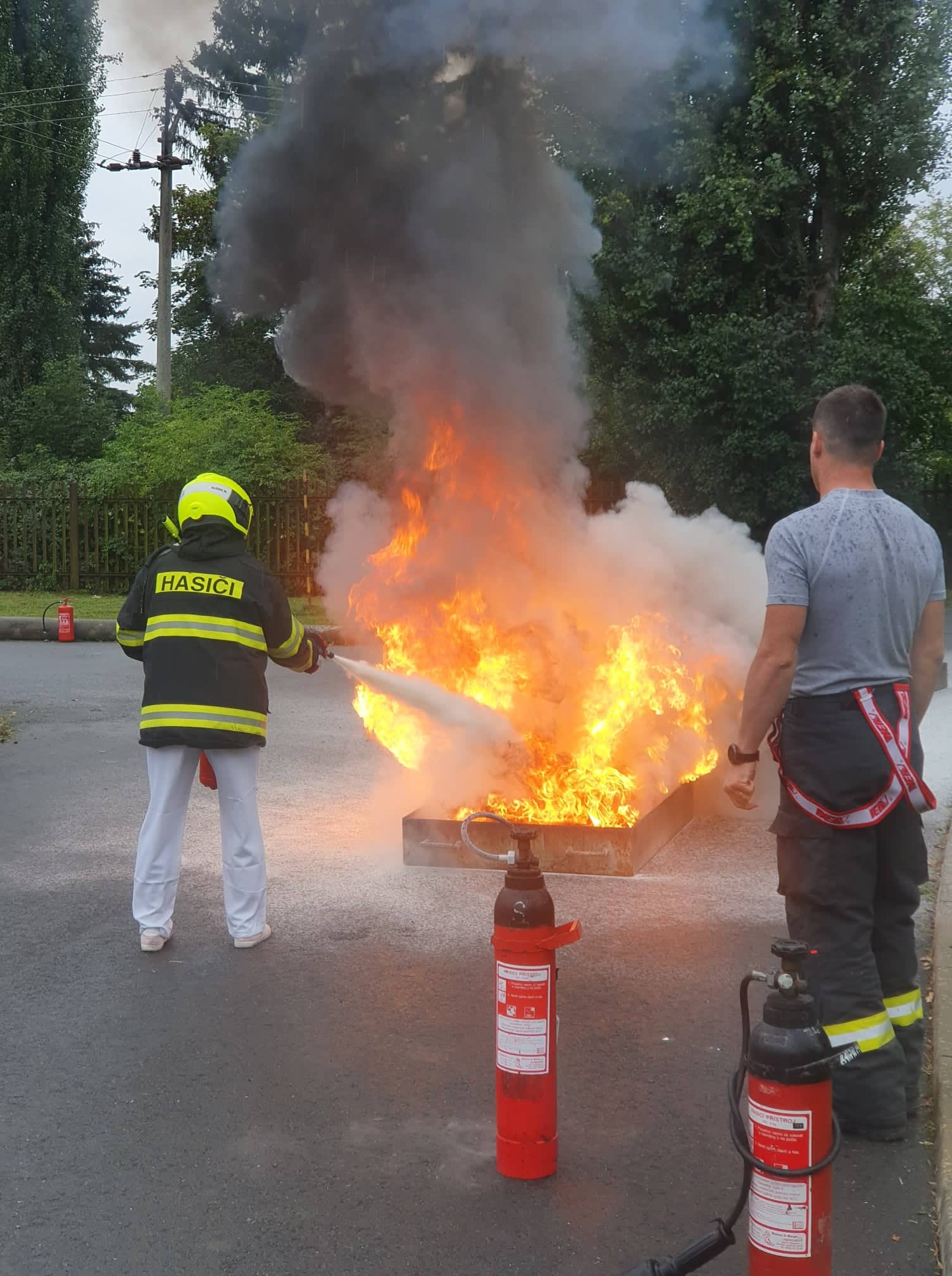 Středeční dopoledne si zdravotníci z Uherskohradišťské nemocnice vyzkoušeli adrenalinový zážitek v podobě hašení připraveného požáru. V rámci školení preventivních požárních hlídek trénovali pod dohledem profesionálních hasičů a bezpečnostního technika nemocnice manipulaci s hasícími přístroji a likvidaci plamenů.